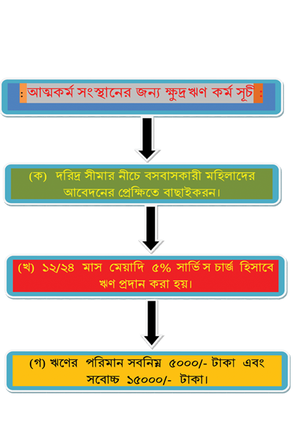 | ৩ | আত্মকর্মসংস্থানের জন্য ক্ষুদ্র ঋণ কর্মসূচী- | দেখুন | |