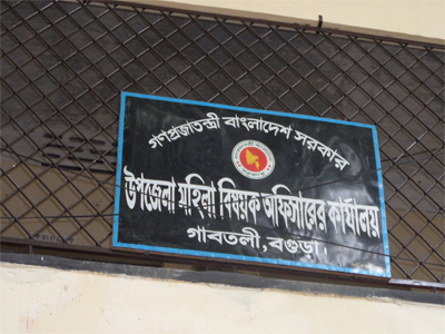 উপজেলা মহিলা বিষয়ক কর্মকর্তার কার্যালয়, গাবতলি উপজেলা পরিষদের পুরাতন দোতলা ভবনের ২য় তলার ৪ ও ৫ নম্বর কক্ষ।